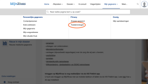 - Ga boven in het scherm in de menubalk naar “Mijn Gegevens”of, wanneer daar niet zichtbaar: klik linksboven op de drie horizontale balkjes en kies “Mijn Gegevens”