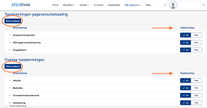Klik aan waarvoor u toestemming wilt geven, de bovenste drie betreffen het delen van informatie onder zorgverleners.